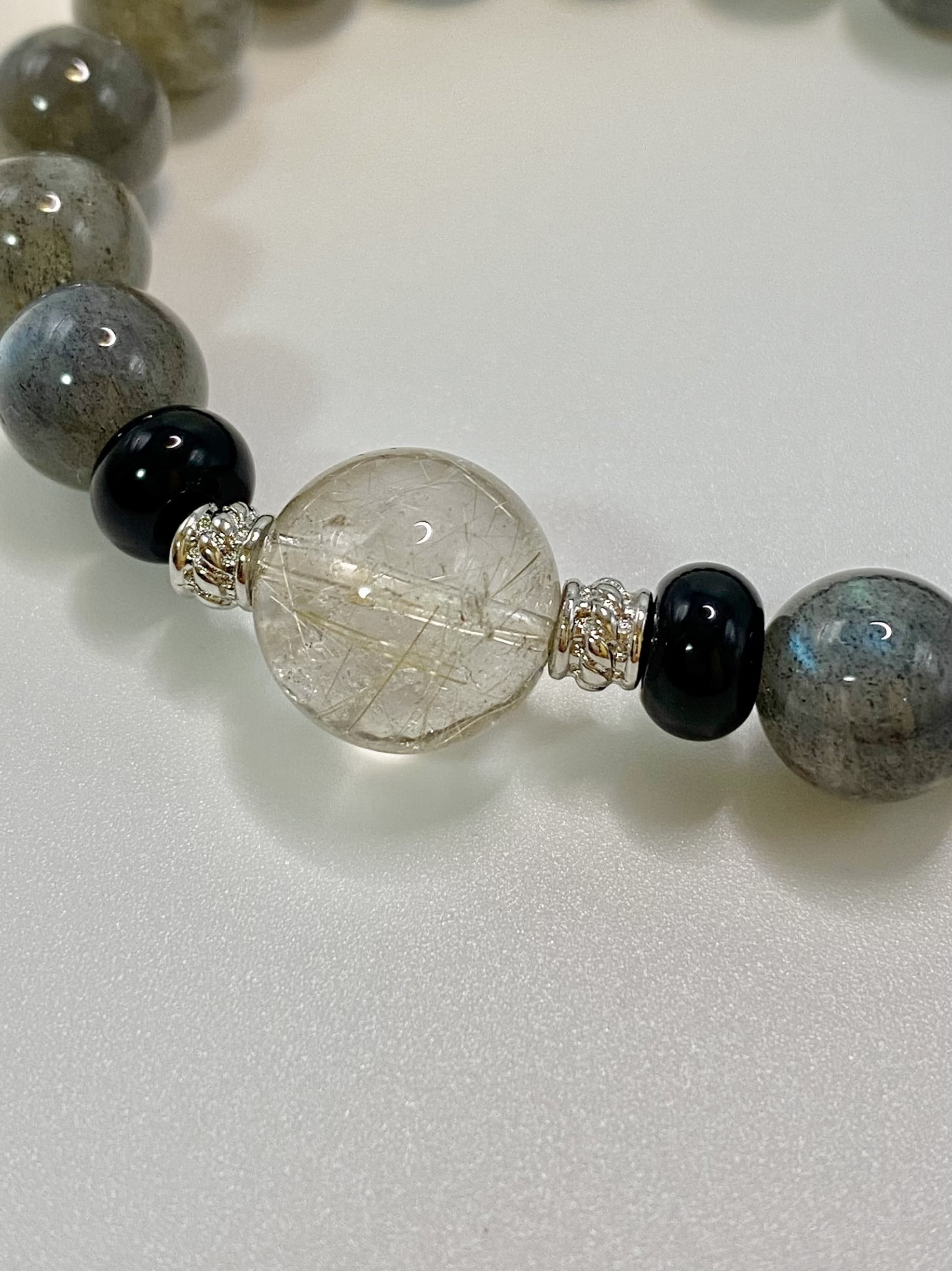 TONOシリーズ「ミラクルな成功へナビゲート、 ラブラドライト&ルチルクォーツブレス」