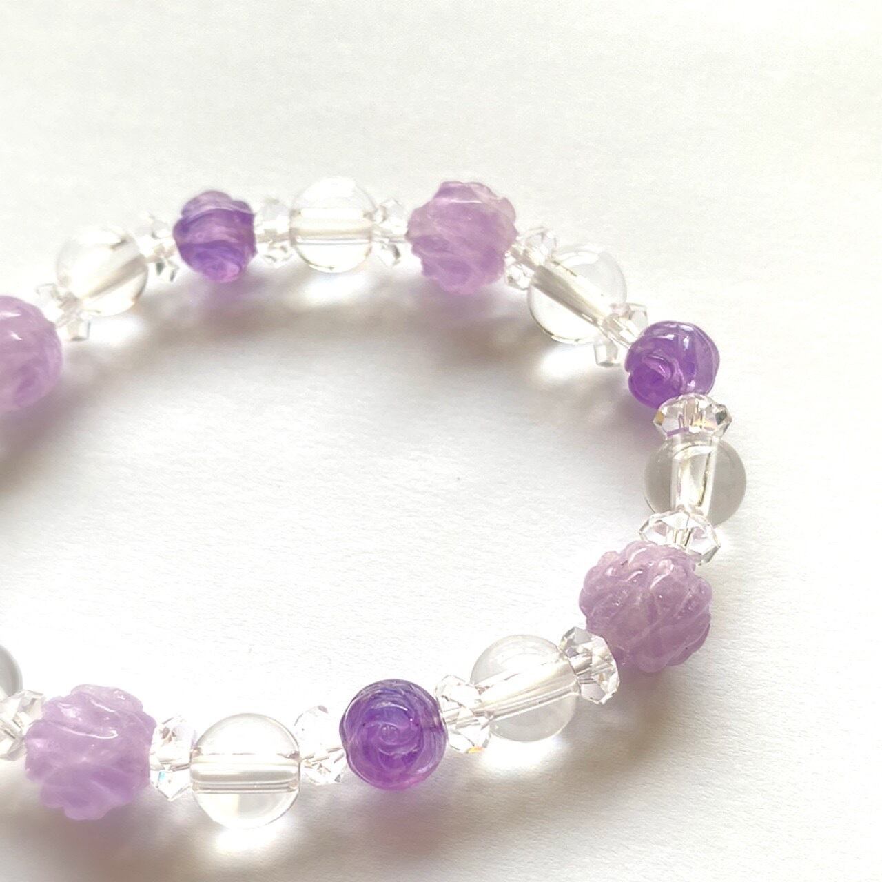 金満美麗シリーズ 揺るがない愛情運・金運・才能魅力アップ「薔薇づくしアメジスト&水晶ブレス」