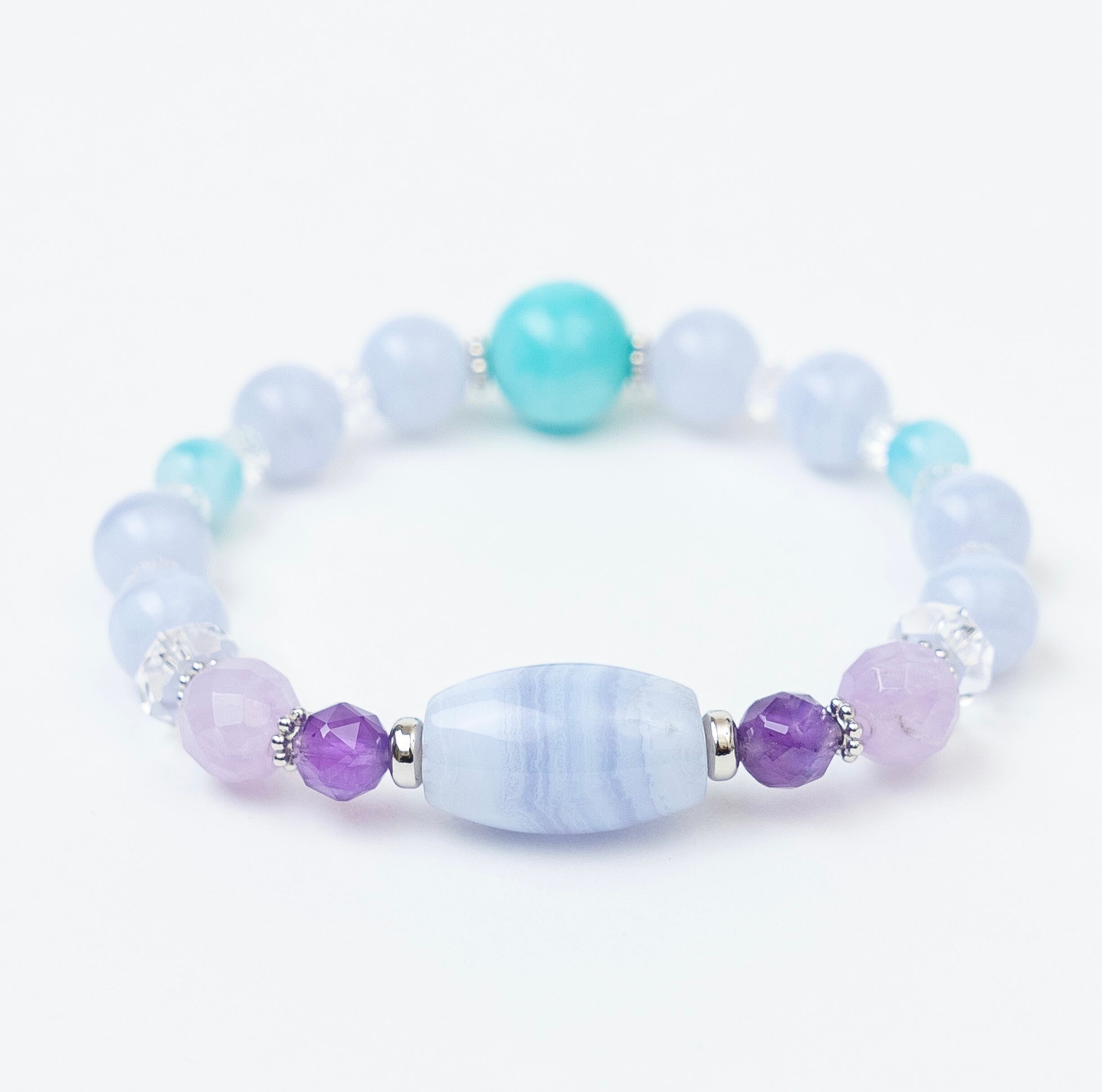 【雑誌掲載】対人関係・心身の健康「ブルーレースアゲート✖️アマゾナイト✖️アメジストブレスレット」