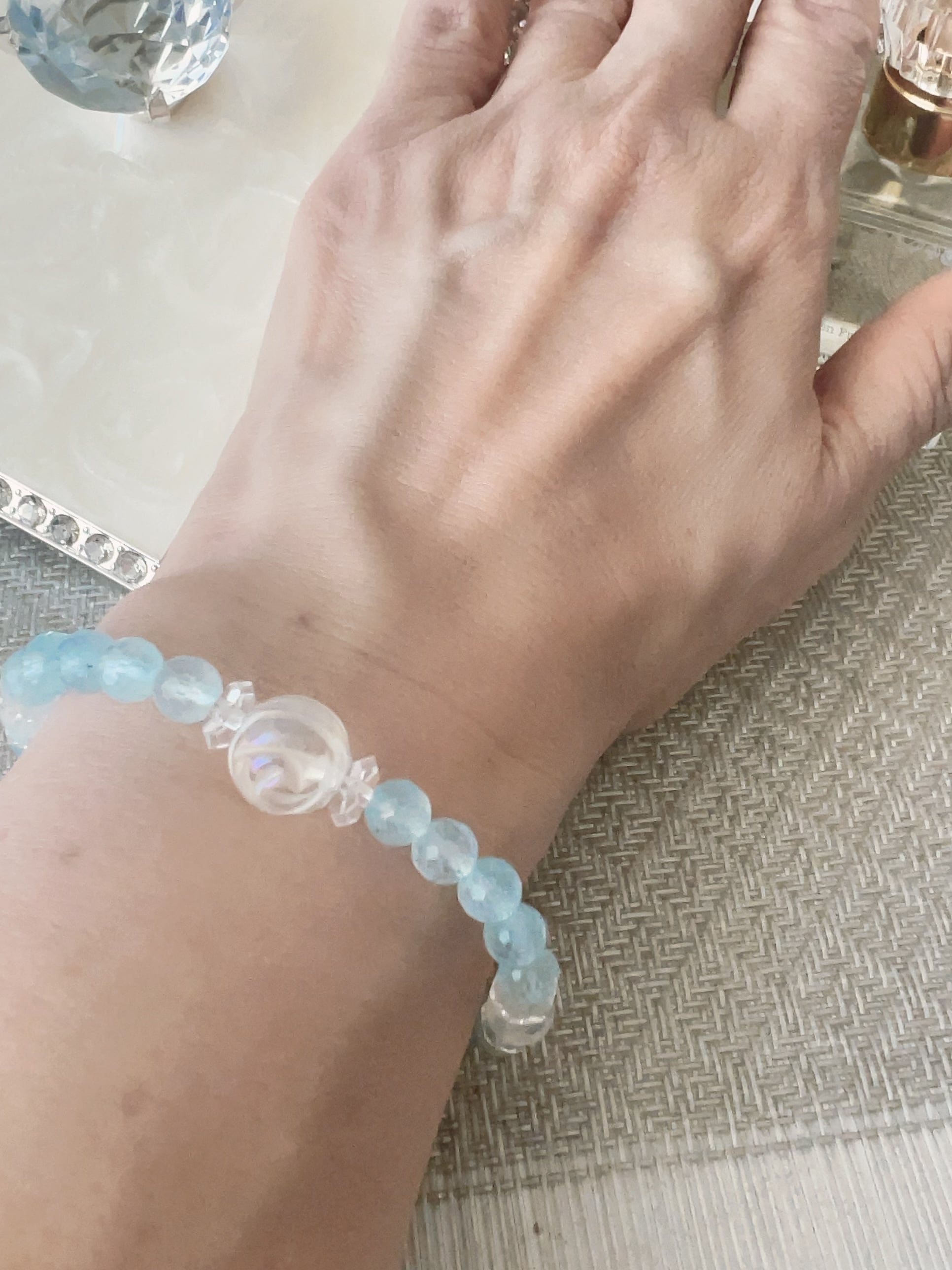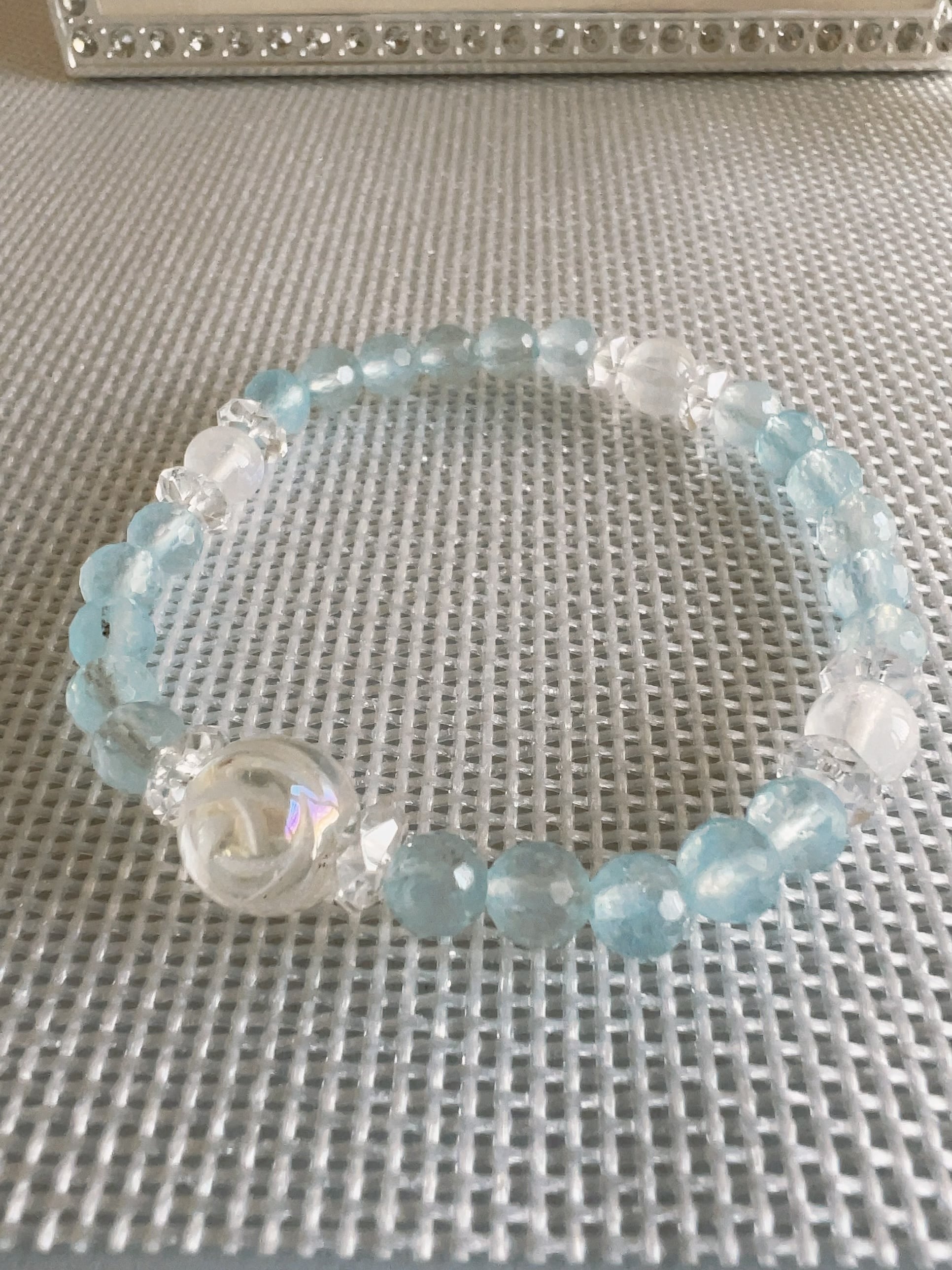 贅沢な宝石質アクアマリンが贈る、輝きと幸運。高品質の天然石を使用した、こだわりのブレスレットです。