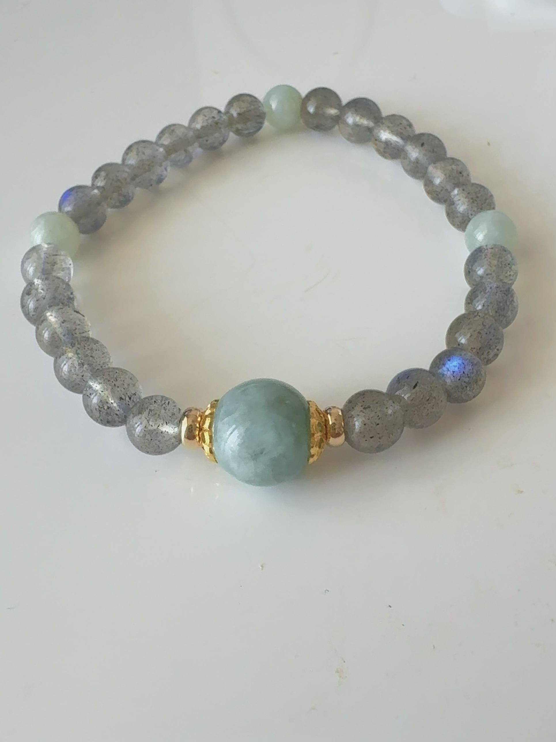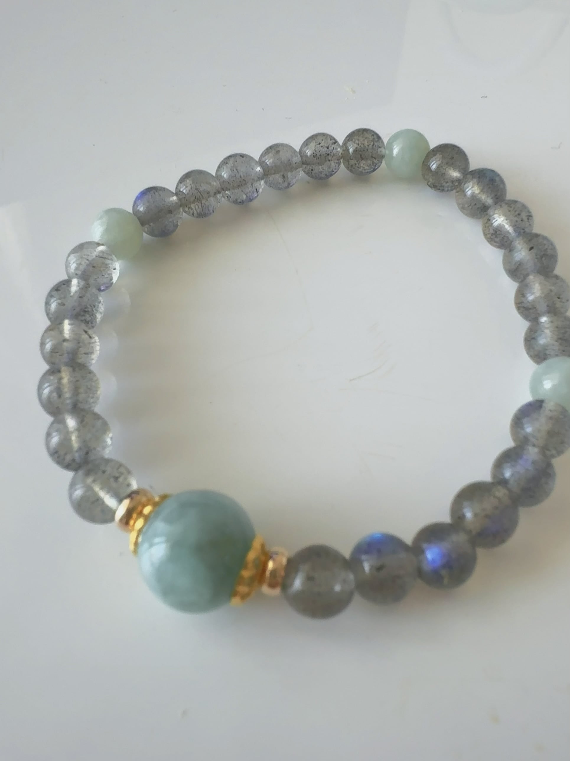 光運shop龍神ブレスレットシリーズ!「青龍エネルギー、ブルーラブラドライト&翡翠」パーツ10K使用